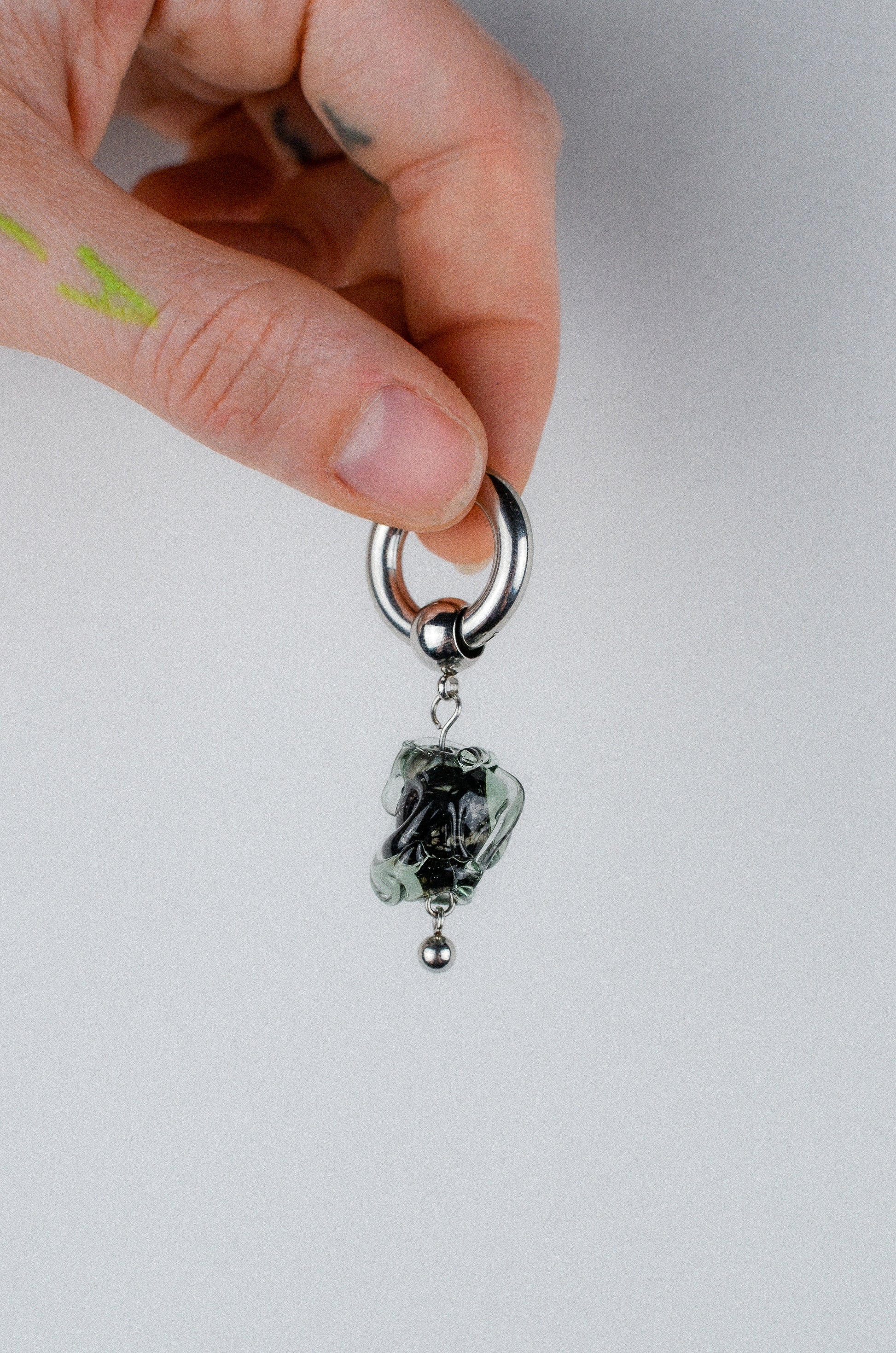 Anneau avec perle en verre et détail.