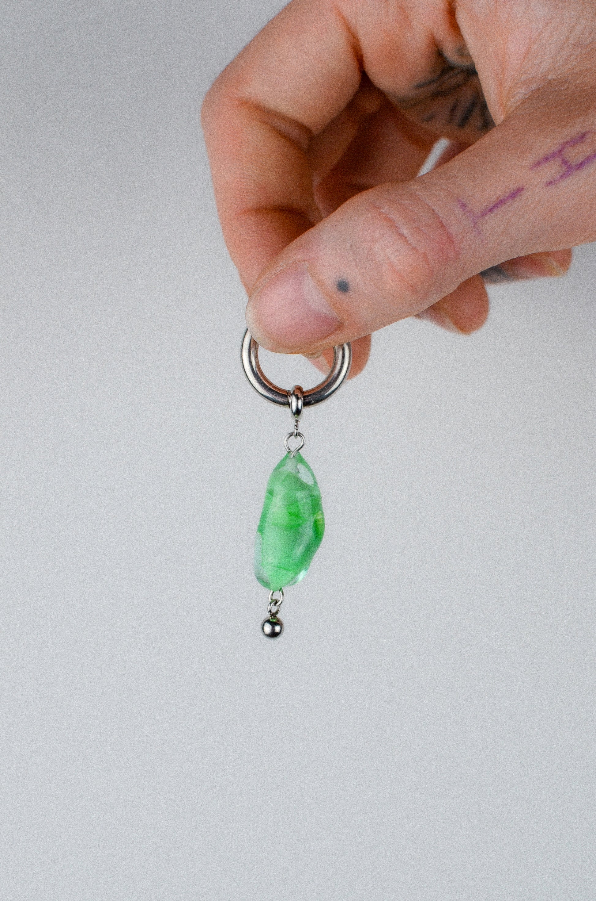 Anneau avec perle en verre et détail.