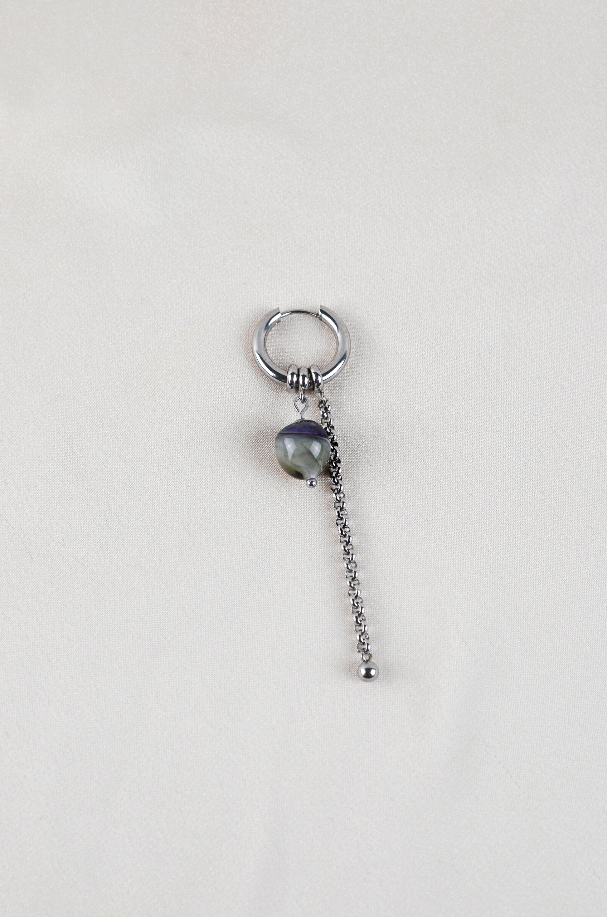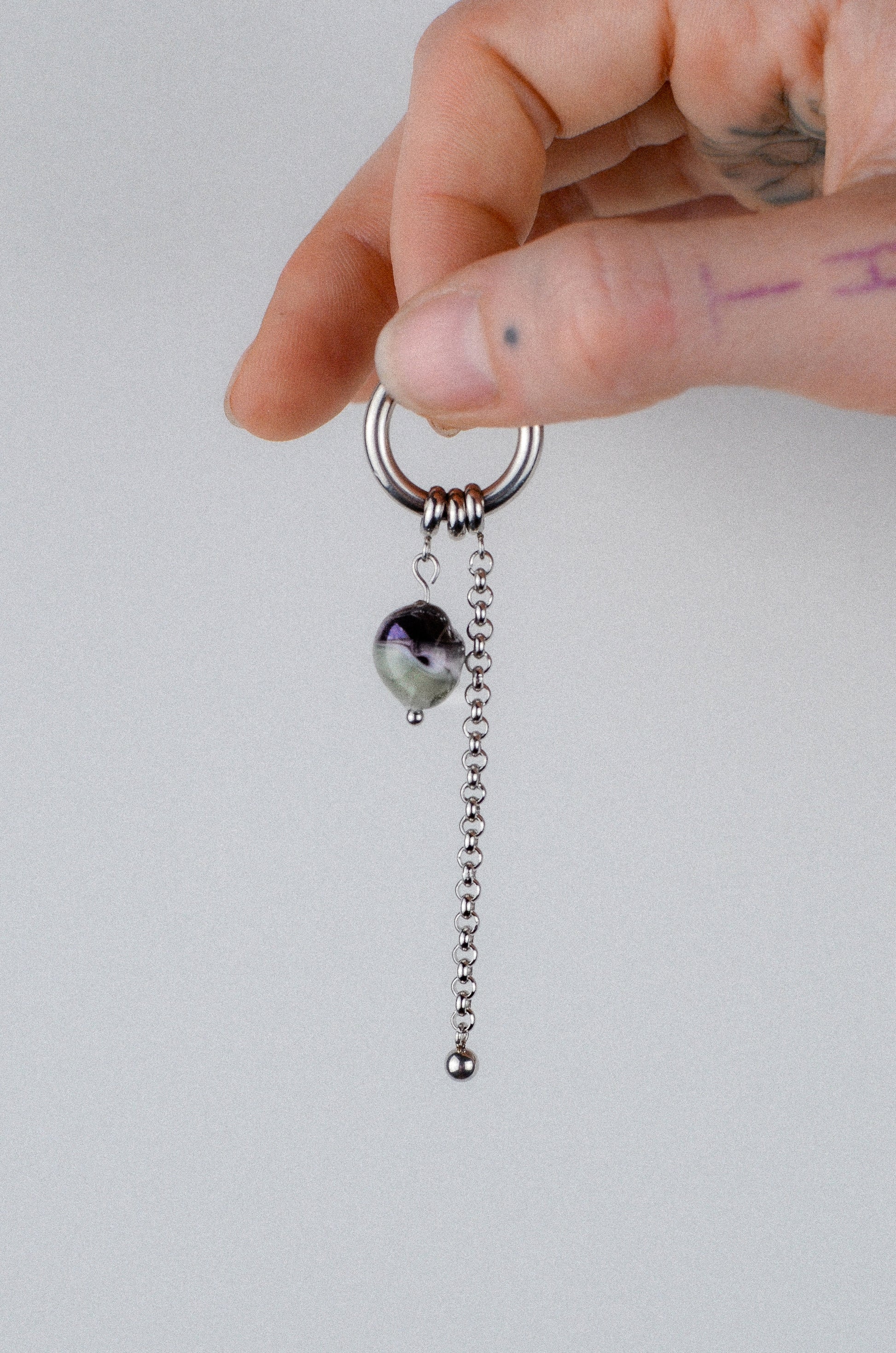 Anneau avec perle en verre, détails et chaîne.