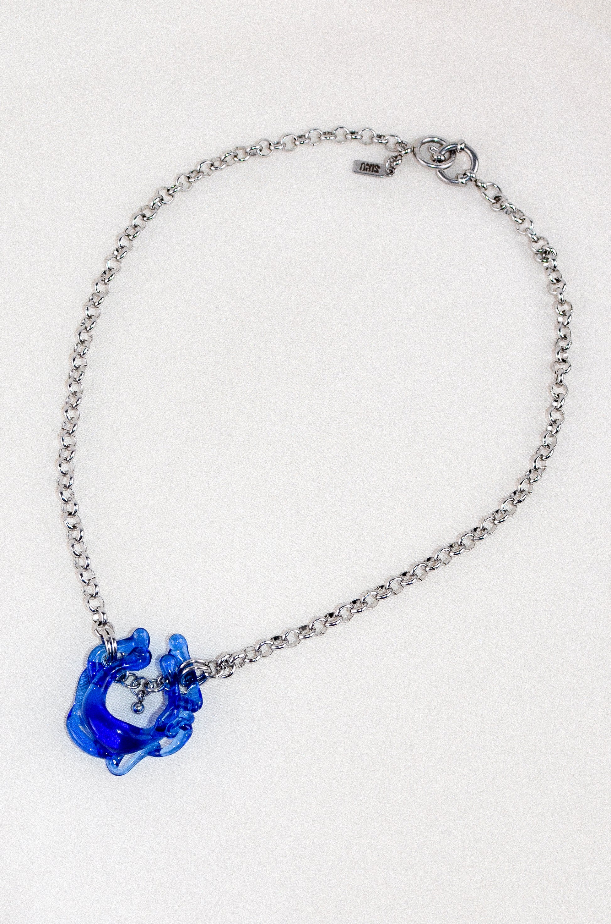 Collier avec perle en verre et détail.